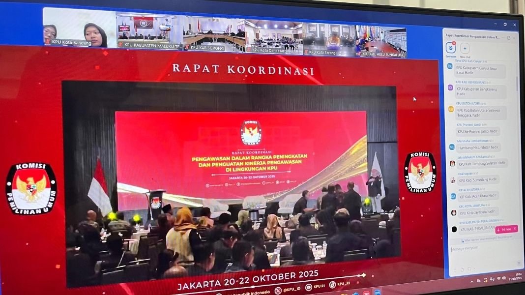 BANDUNG – Selasa (21/10/2025), KPU Kota Bandung mengikuti Rapat Koordinasi Pengawasan dalam Rangka Peningkatan dan Penguatan Kinerja Pengawasan di Lingkungan KPU secara daring. Kegiatan ini dihadiri oleh Ketua dan Anggota KPU Kabupaten/Kota, Sekretaris dan Jajaran Sekretariat KPU Kabupaten/Kota se Indonesia.