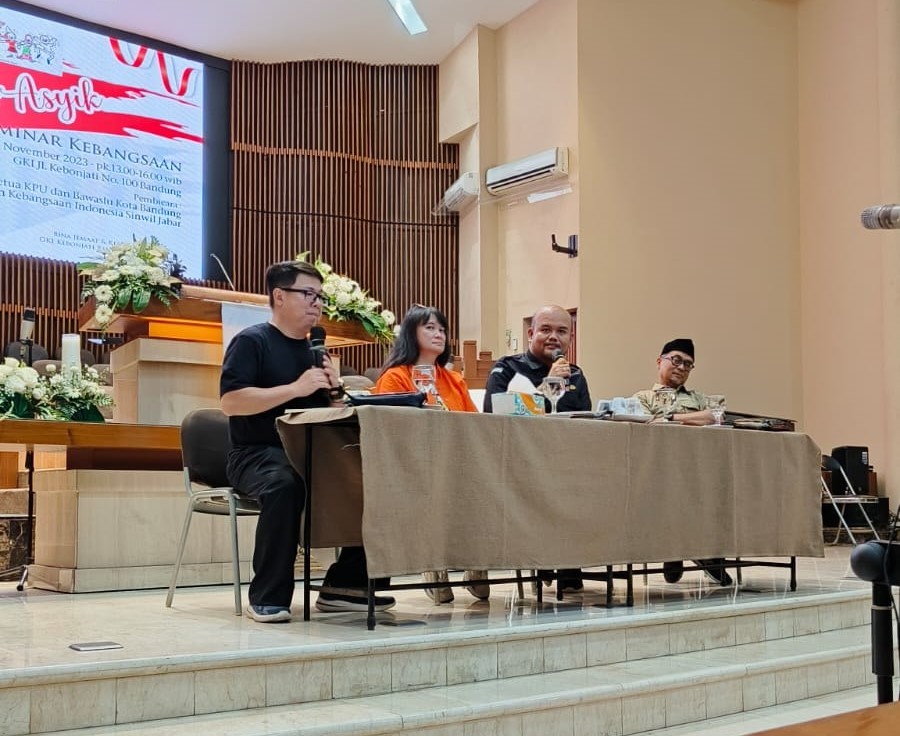 #TemanPemilih, Pada Minggu (26/11/23) di GKI Kebonjati, Jl. Kebon Jati No.100, Kb. Jeruk, Kec. Andir, Kota Bandung. Kasubbag Teknis Penyelenggaraan Pemilu Partisipasi Hubungan Masyarakat KPU Kota Bandung, Pak Sonang Mauludin Malik, S.H hadir sebagai salah satu narasumber dalam acara yang diselenggarakan oleh Gerakan Kebangsaan Indonesia Jawa Barat yang bekerjasama dengan GKI Kebonjati. Acara bertujuan memberikan literasi pemilu kepada jemaat gereja, mengajak mereka untuk aktif terlibat sebagai pemilih bijak dan bertanggung jawab dalam Pemilu 2024.