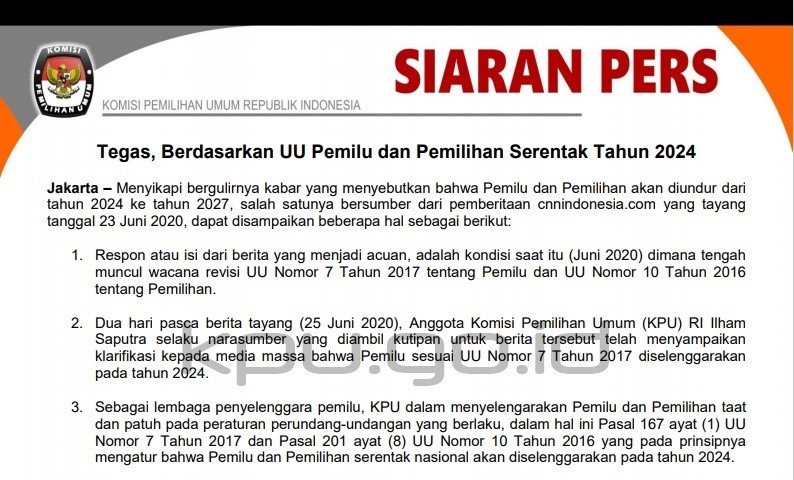 Berikut rilis resmi KPU: Rilis Pemilu dan Pemilihan di 2024