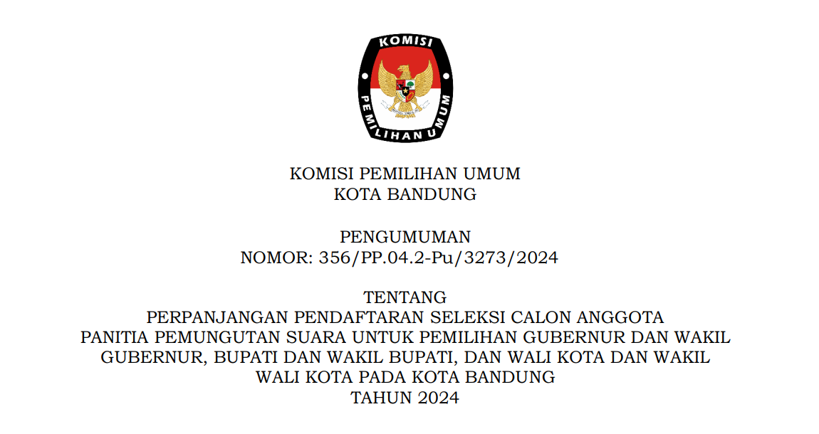 PERPANJANGAN PENDAFTARAN SELEKSI CALON ANGGOTA PANITIA PEMUNGUTAN SUARA UNTUK PEMILIHAN WALI KOTA DAN WAKIL WALI KOTA PADA KOTA BANDUNG TAHUN 2024