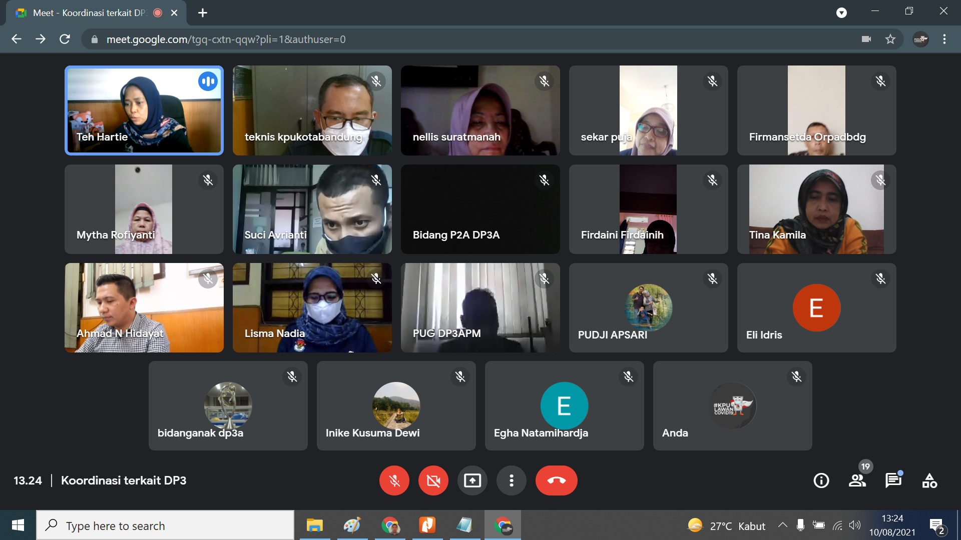 Selasa (10/8) , audiensi secara virtual antara KPU Kota Bandung dengan DP3A (Dinas Pemberdayaan Perempuan dan Perlindungan Anak ) Kota Bandung dalam rangka melakukan koordinasi jelang tahapan penyelenggarakan Pemilu Serentak 2024 pada tahun 2022 guna meningkatkan modal sosial dalam bentuk peningkatan literasi kepemiluan bagi kaum perempuan di Kota Bandung
